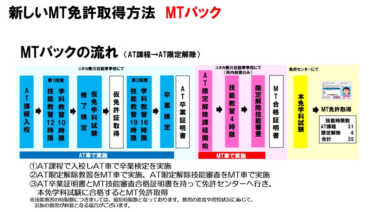 マニュアル免許取得方法変更のお知らせ(MTパック)